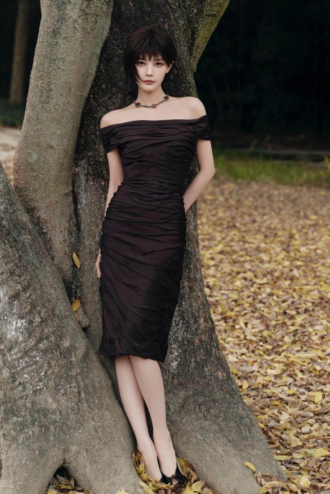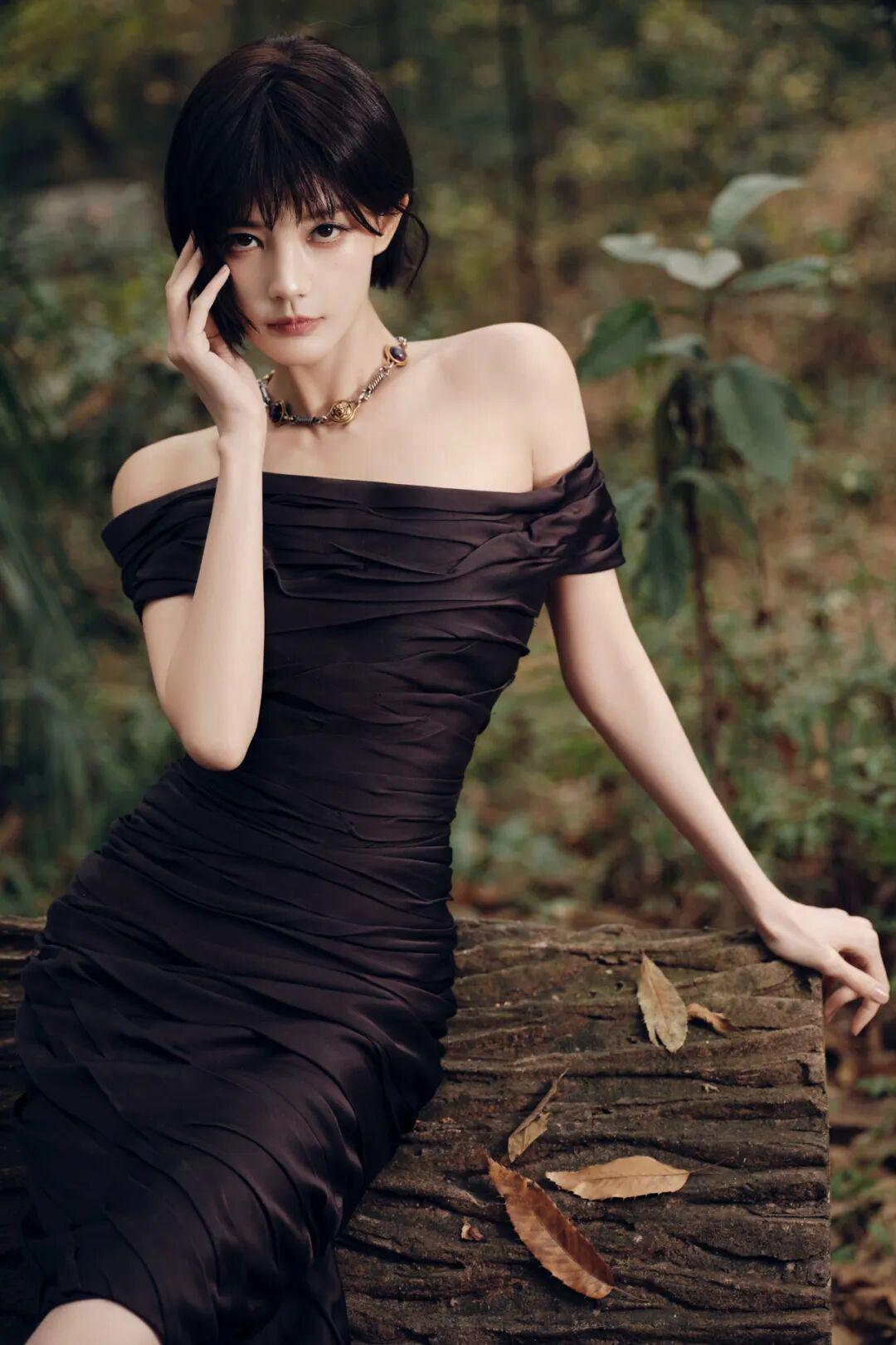 欧冠官网入口-李一桐短发配露肩裙,好美好迷人!